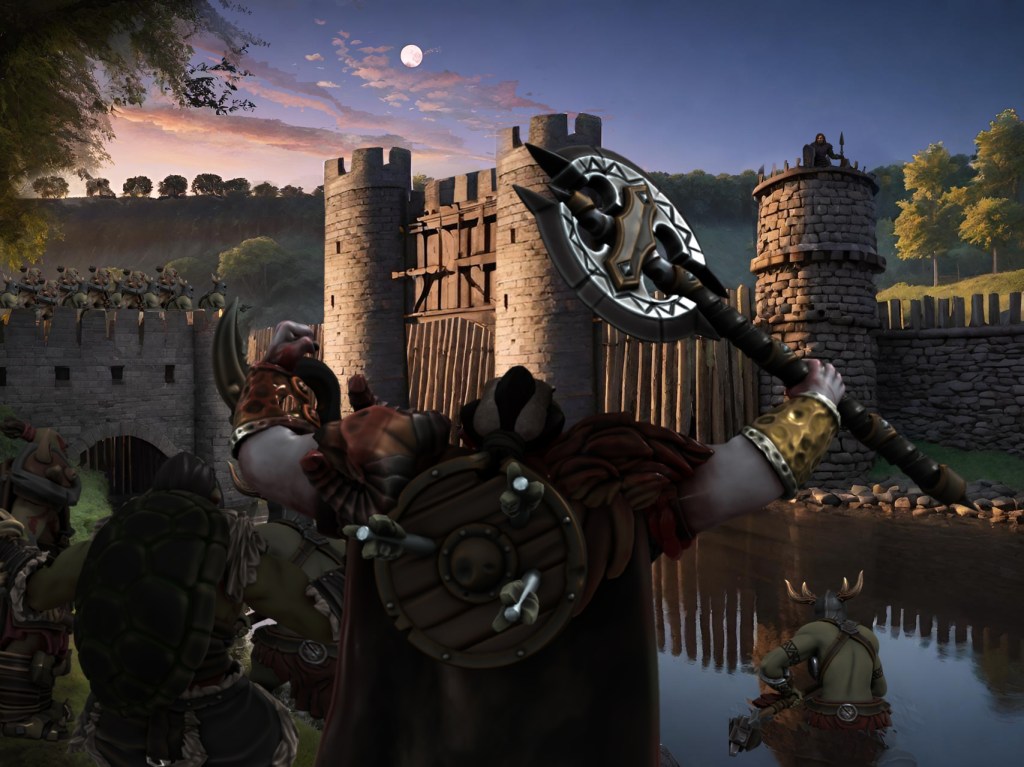 Dear readers, before the break of dawn, our valiant champions were roused from their slumber by the urgent tolling of the Nightstone alarm bell, a call to arms that echoed through the streets like thunder. With a swift and purposeful stride, they burst forth from the inn’s threshold, their hearts aflame with resolve, their spirits forged in the crucible of adversity. Upon reaching the gatehouse, they were greeted by Privates Breck and Winterspell, whose urgent words carried the weight of impending doom. Across the river, an orcish warband, numbering over twenty strong, had gathered, their savage cries rending the air like a tempest unleashed. Hindered by the raised drawbridge, the orcs resorted to desperate measures, dispatching scouts to swim across the Ardeep River in a bid to breach Nightstone’s palisade wall.