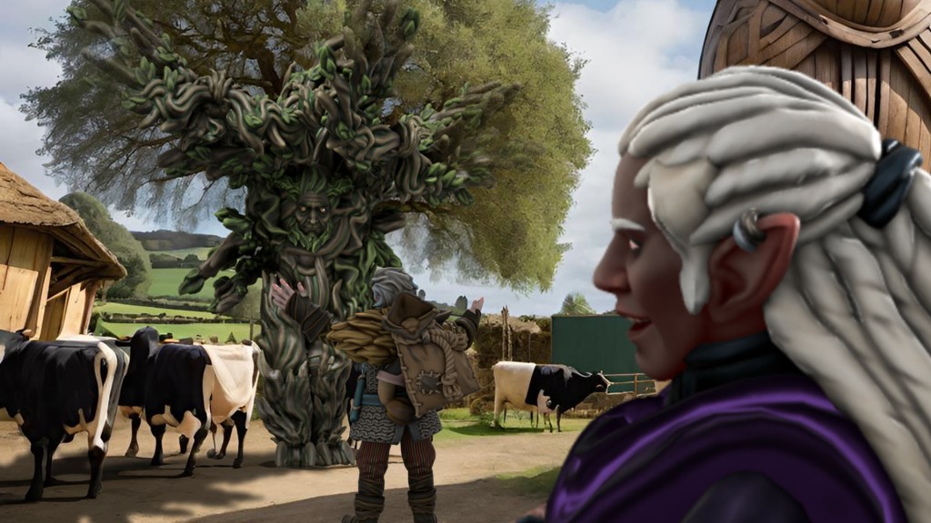 Their musings were soon interrupted by the lumbering approach of Lifferlas, the awakened tree. Despite a touch of forgetfulness regarding his name, Lifferlas greeted Zephyr with the warmth of a lifelong companion. In a conversation as slow and steady as the growth of oaks, Lifferlas waxed lyrical about his fondness for children, a sentiment that touched the hearts of some of our heroes.