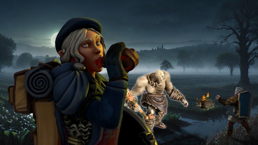 Meanwhile, the villagers faced a similar raiding party. Led by the audacious Zi, who defiantly shouted in the goblin tongue, they braved a storm of arrows. Shalvus, Miros, and Oren were struck, but the little bard, despite his wounds, sang to inspire Zi. Naxene, realizing their dire straits, unleashed her magic missiles, felling a goblin. As the ogres advanced across the stream, Miros fired his crossbow, and Naxene’s magic took down another ogre. The defenders were hard-pressed, but at that fateful moment, our six valiant heroes arrived.